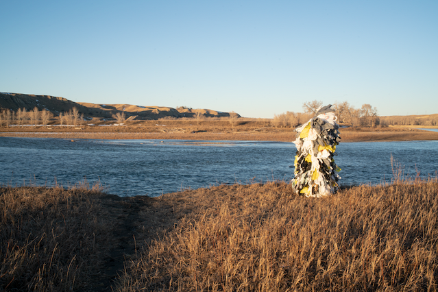 Photos after completion of the Plastic Bag Creature, taken in Lethbridge, AB. 2021.